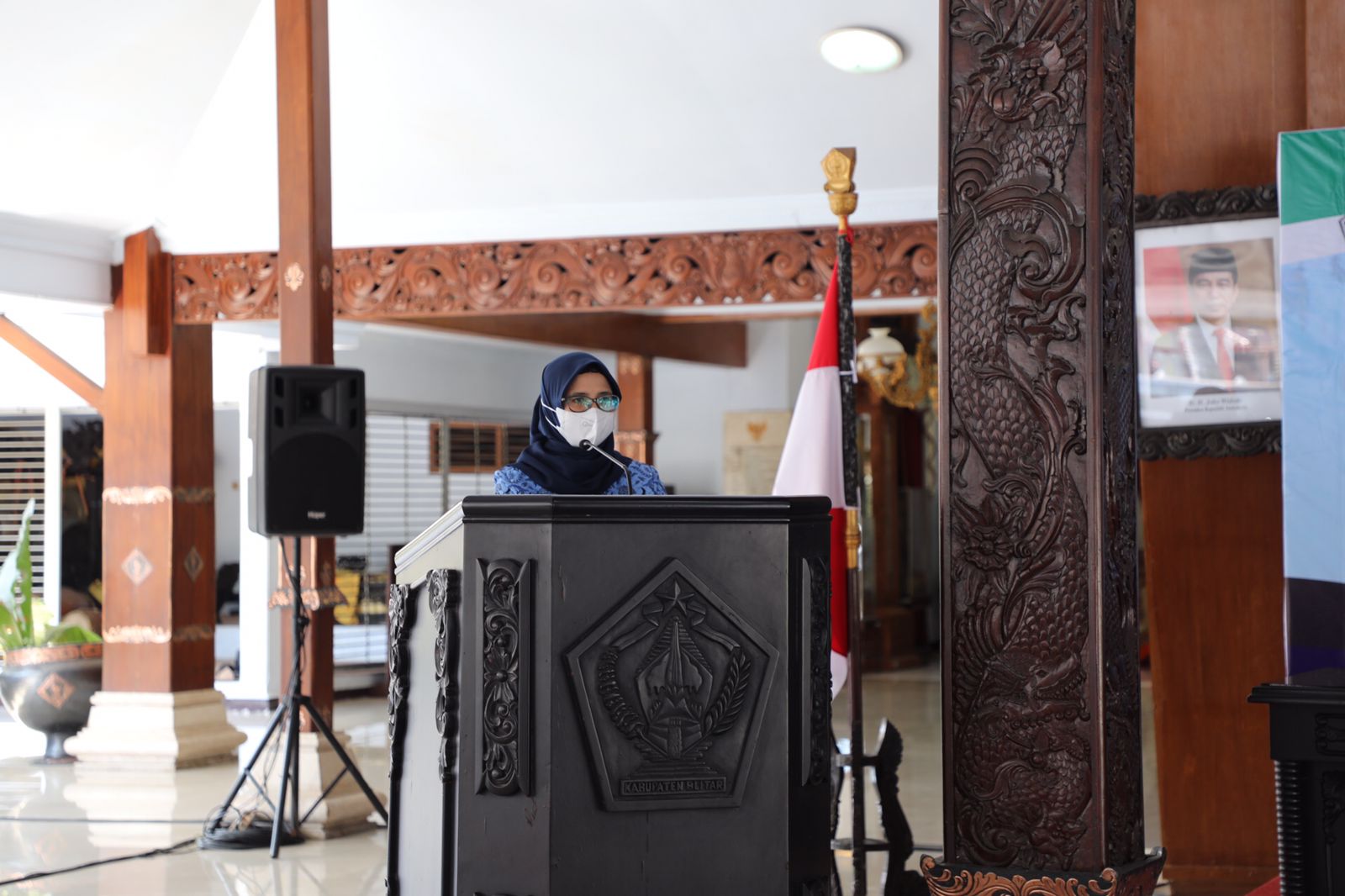PEMKAB BLITAR – Bupati Blitar Rini Syarifah menghadiri pengukuhan Dewan Pengurus KORPRI masa Bakti tahun 2021-2026 bertempat di Pendopo RHN, Selasa (12/10/2021).
