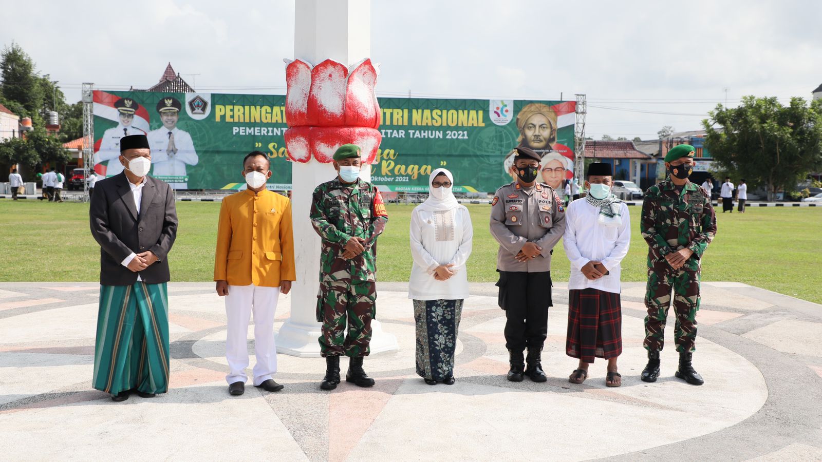 PEMKAB BLITAR – Pemerintah Kabupaten Blitar menggelar upacara peringatan Hari Santri Nasional tahun 2021 dihadiri oleh Bupati Blitar didampingi Forkopimda yang bertempat di Lapangan Kantor Bupati Kanigoro, Senin (25/10/2021).