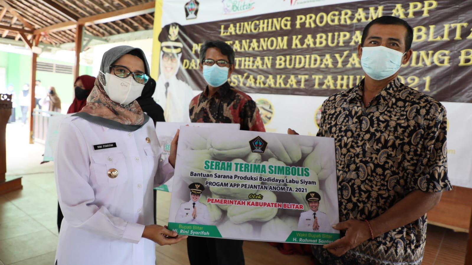 BLITAR KAB – Bupati Blitar Rini Syarifah melaksanakan launching Anti Poverty Program Pelatihan Kewirausahaan dan Jalin Kemitraan Pertanian/Peternakan/ Perikanan Non Mainstream atau APP Pejantan Anom Tahun 2021 di Desa Ponggok Kacamatan Ponggok Kabupaten Blitar, Rabu (27/10/2021).