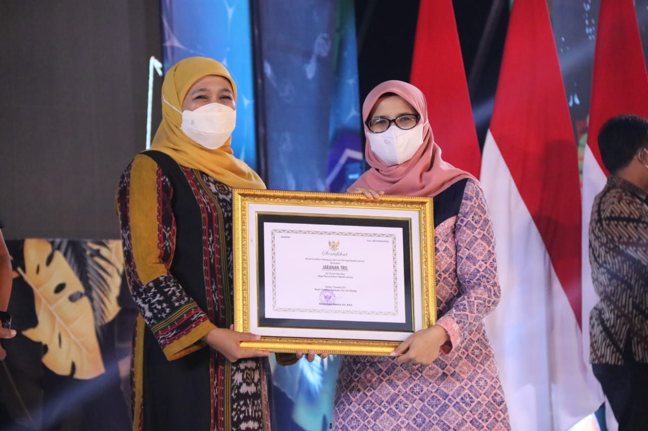 Pada kesempatan kali ini Kabupaten Blitar memperoleh sertifikat Warisan Budaya Tak Benda “Jaranan Tril” dari Mendikbudristek yang diserahkan secara langsung oleh Gubernur Jatim Khofifah Indar Parawansa dan penghargaan Pengelola Desa Wisata Serang Unggulan Lomba Video Profile Desa Wisata Tahun 2021 tingkat Jawa Timur yang diserahkan langsung oleh Plh. Sekda Provinsi Jatim Heru Tjahjono.