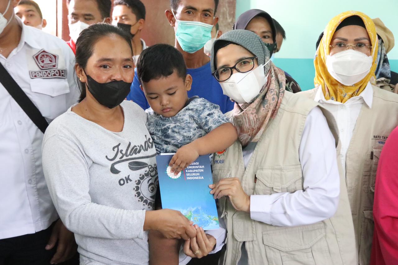 BLITAR KAB – Bupati Blitar Rini Syarifah Selaku Wakil Ketua Bidang Ristek Asosiasi Pemerintah Kabupaten Seluruh Indonesia (APKASI) mendampingi Ketua Umum, menyerahkan bantuan untuk warga Kabupaten Lumajang terdampak bencana Awan Panas Guguran (APG) Gunung Semeru, Senin (13/12/2021).