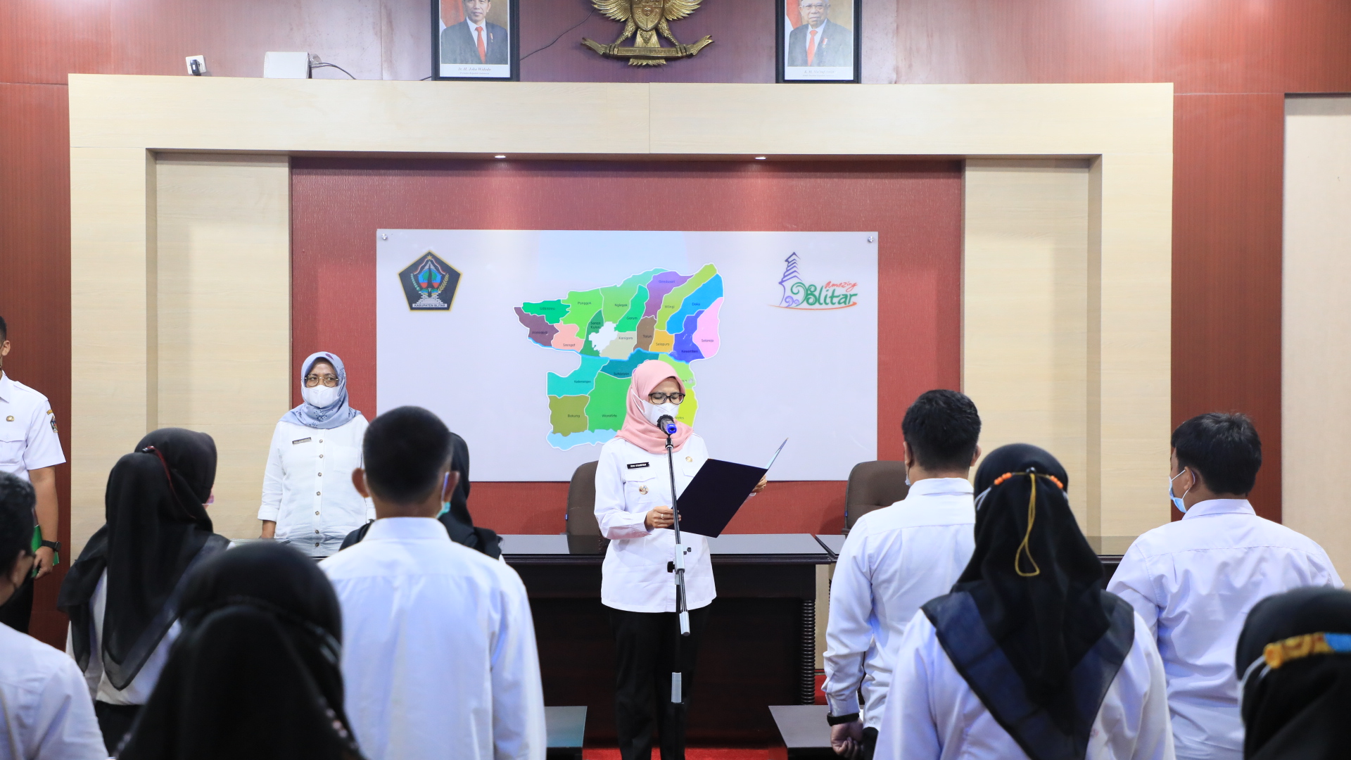 PEMKAB BLITAR– Pemerintah Kabupaten Blitar melalui Dinas Sosial melakukan kegiatan pengukuhan Ikatan Pekerja Sosial Masyarakat (IPSM) Kabupaten Blitar Masa Bhakti 2021-2026 bertempat di Ruang Perdana dengan menerapkan protokol kesehatan secara ketat, Rabu (12/1/2022).