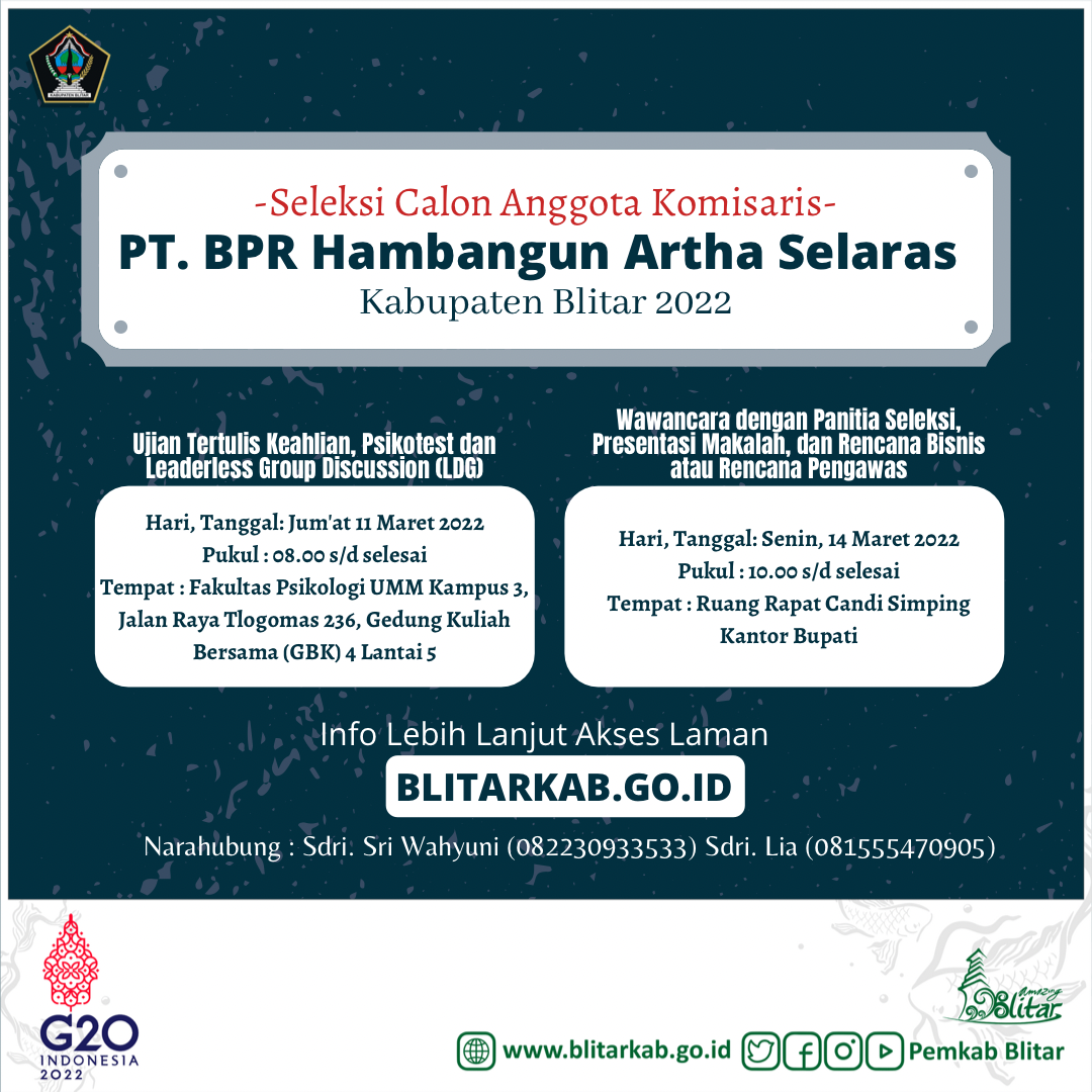 Pengumuman Seleksi Calon Anggota Komisaris PT. BPR Hambangun Artha Selaras