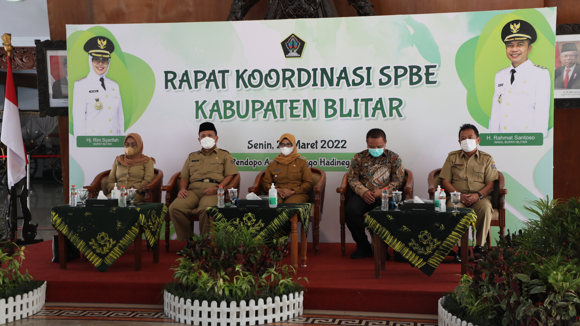 PEMKAB BLITAR – Dinas Komunikasi dan Informatika Kabupaten Blitar melalui bidang Informatika menggelar kegiatan Rapat Koordinasi Sistem Pemerintahan Berbasis Elektronik (SPBE) dihadiri oleh Bupati Blitar, Sektetaris Daerah, Asisiten dan diikuti oleh seluruh OPD serta seluruh Camat serta Kepal Puskesmas secara luring dan daring bertempat di Pendopo RHN, Senin (28/3/2022).