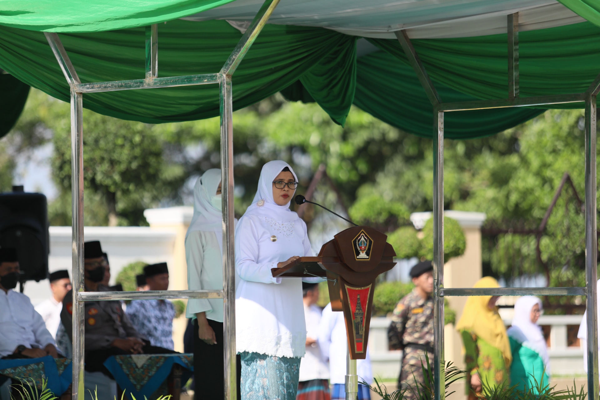 Para santri dari berbagai Pondok Pesantren di Kabupaten Blitar mengikuti upacara Hari Santri. Sekda Kabupaten Blitar, Asisten Sekretariat Kabupaten Blitar, sejumlah kepala OPD turut hadir mengikuti upacara ini.