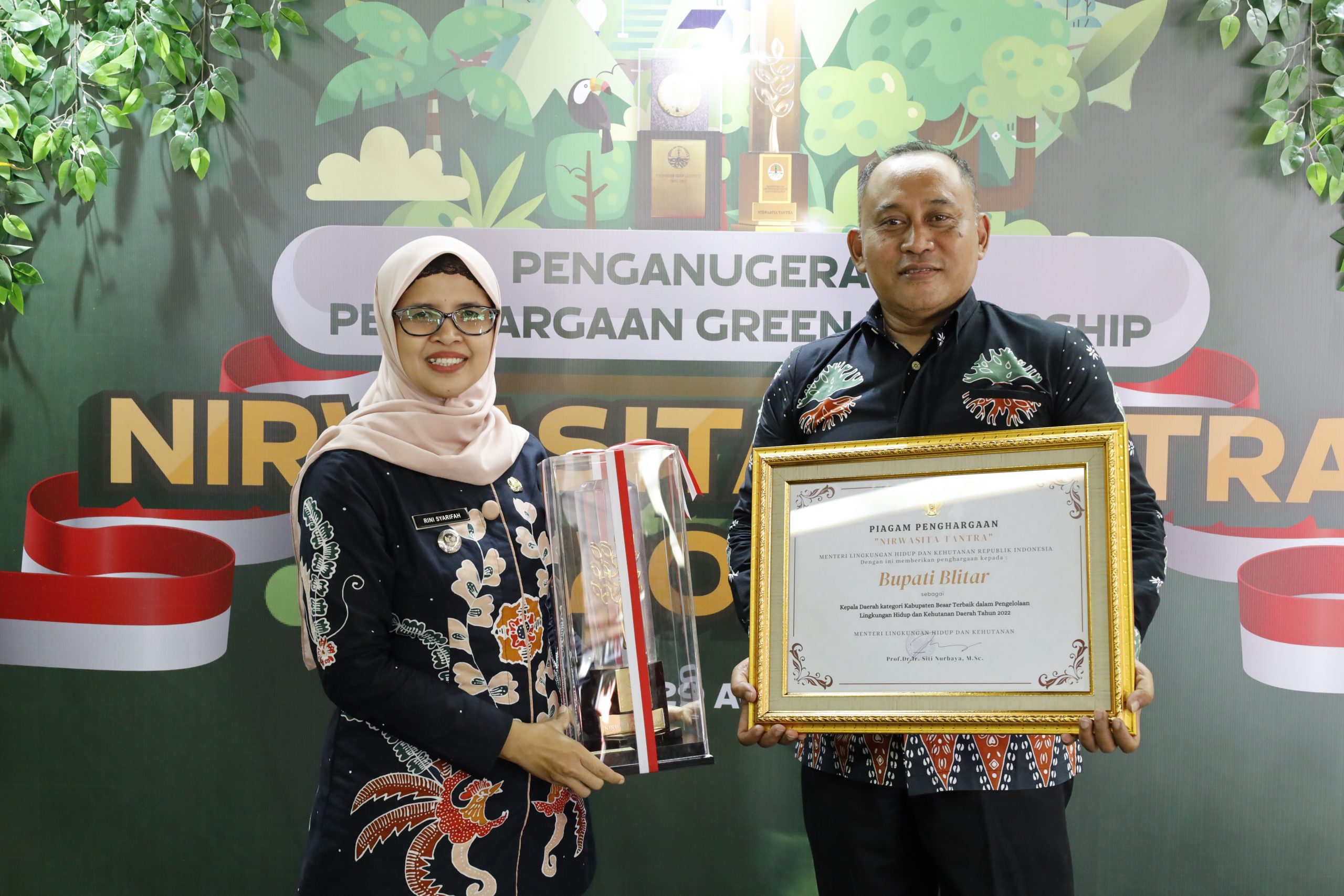 Penghargaan di bidang pengelolaan lingkungan hidup dan kehutanan daerah ini diserahkan langsung oleh Menteri Lingkungan Hidup dan Kehutanan Republik Indonesia, Prof.Dr..Ir. Sti Nurbaya Bakar, M. Sc dan diterima oleh Bupati Blitar, Hj.Rini Syarifah di Gedung Manggala Wana Bakti, KLHK, pada acara Penganugerahan Penghargaan Green Leadership “Nirwasita Tantra” untuk Kepala Daerah dan Pimpinan DPRD Tingkat Provinsi/Kabupaten/Kota, Selasa, 29 Agustus 2023.