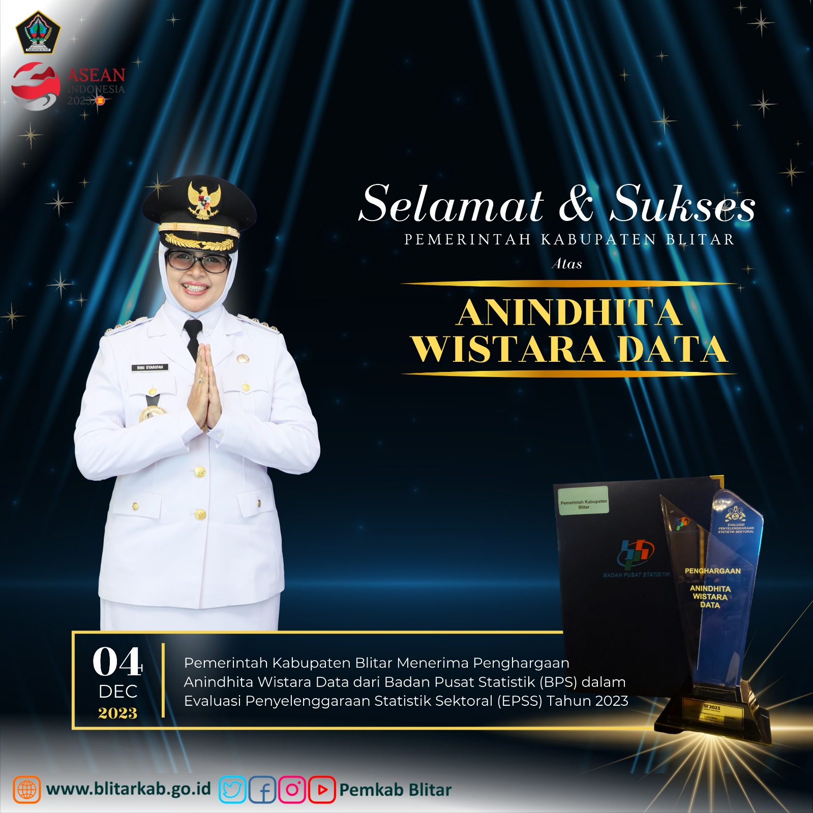 Pemkab Blitar Terima Anugerah Anindhita Wistara Data