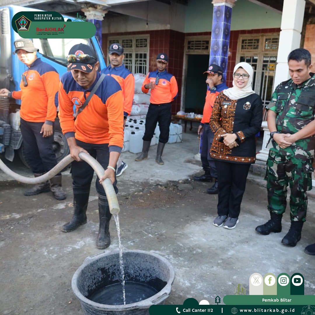 Mak Rini sapaan akrab Bupati Blitar menyampaikan apresiasi atas bantuan Baznas Kabupaten Blitar dan BPBD dalam melaksanakan droping air bersih di Desa Sumberkembar. Semoga dengan adanya droping air bersih ini bisa bermanfaat untuk masyarakat.