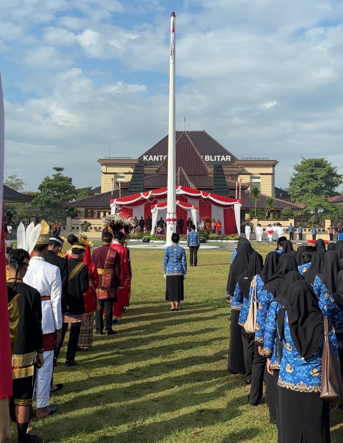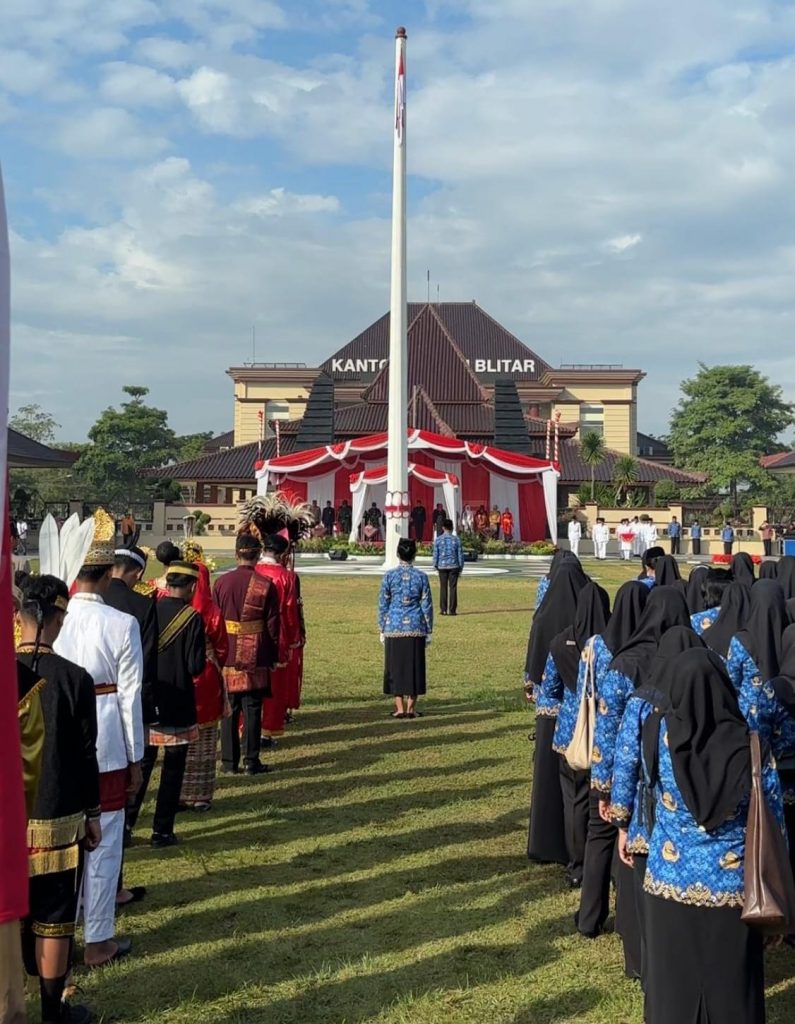 Pemkab Blitar – Pemerintah Kabupaten Blitar menggelar upacara peringatan Hari Pendidikan Nasional dan Hari Otonomi Daerah serta Penyerahan Piagam Penghargaan Pencapaian Kinerja Satuan Pendidikan Tahun Ajaran 2024-2025 di Alun-alun Kanigoro, Jumat (2/5/2025).