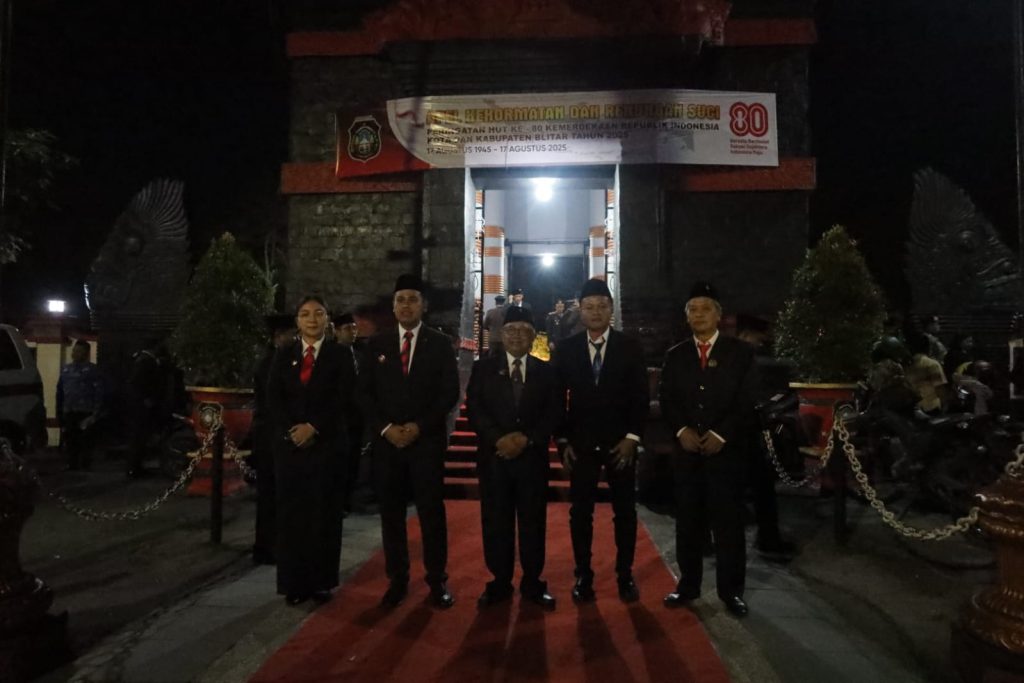 Pemkab Blitar – Bupati Blitar Rijanto, Wakil Bupati Blitar Beky Hardihansah, Forkopimda, Kepala OPD dan Asn di Lingkungan Pemkab Blitar mengikuti renungan suci menjelang 17 Agustus sebagai Peringatan Hari Ulang Tahun ke 80 Republik Indonesia bertempat di TMP Kota Blitar, Sabtu (16/8/2025).