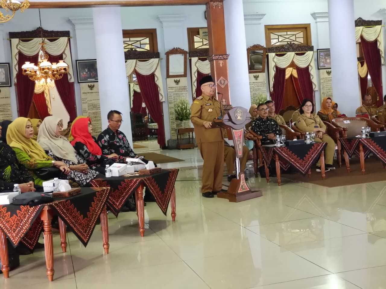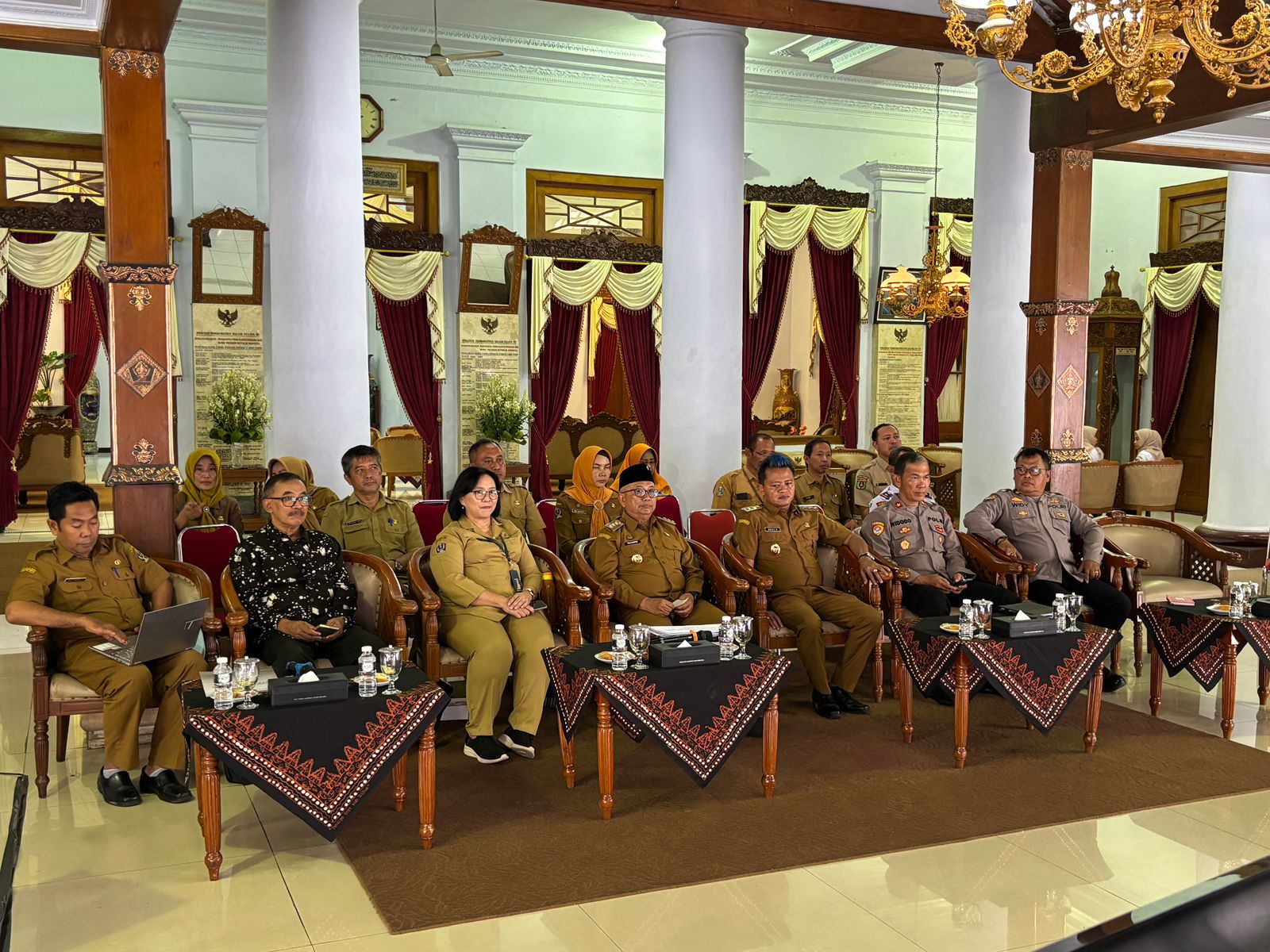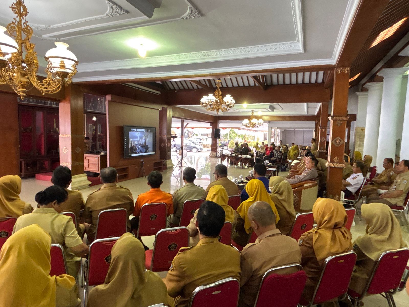 Pemkab Blitar – Bupati Blitar Rijanto didampingi Wakil Bupati Blitar Beky Hardihansah Pj. Sekda, Asisten, Kepala OPD dan Stakeholder melakukan pemaparan kegiatan Verifikasi Lanjutan Penyelenggaraan Penghargaan Kabupaten/Kota Sehat Tahun 2025 melalui zoom meeting bertempat di Pendopo RHN, Selasa(19/8/2025).